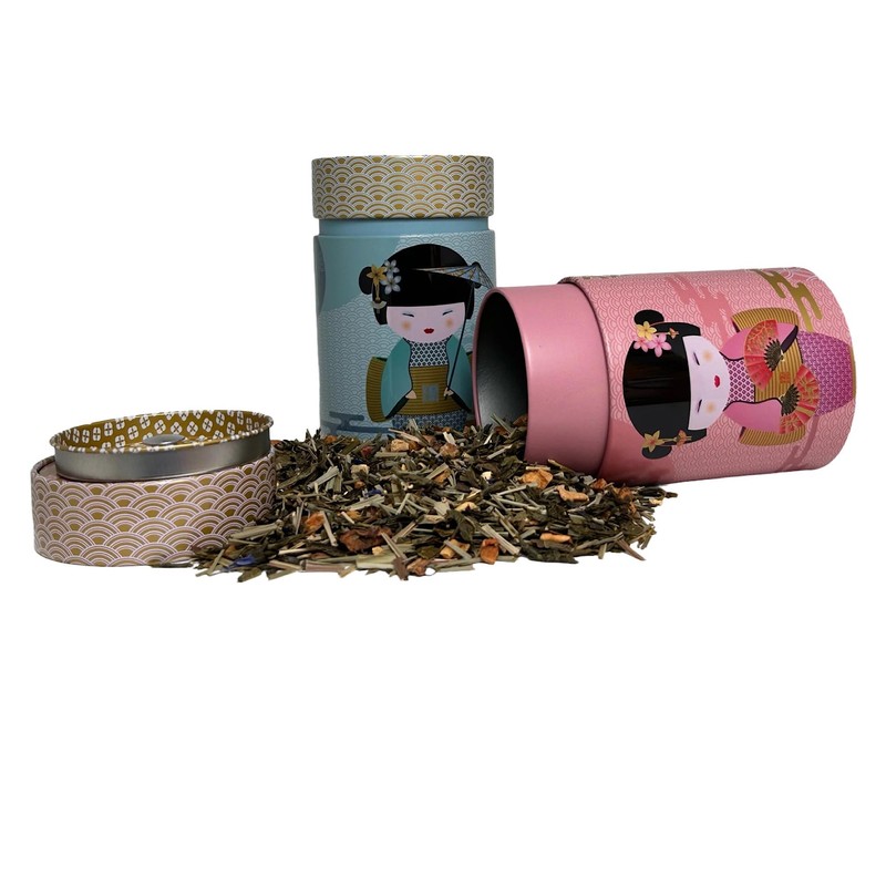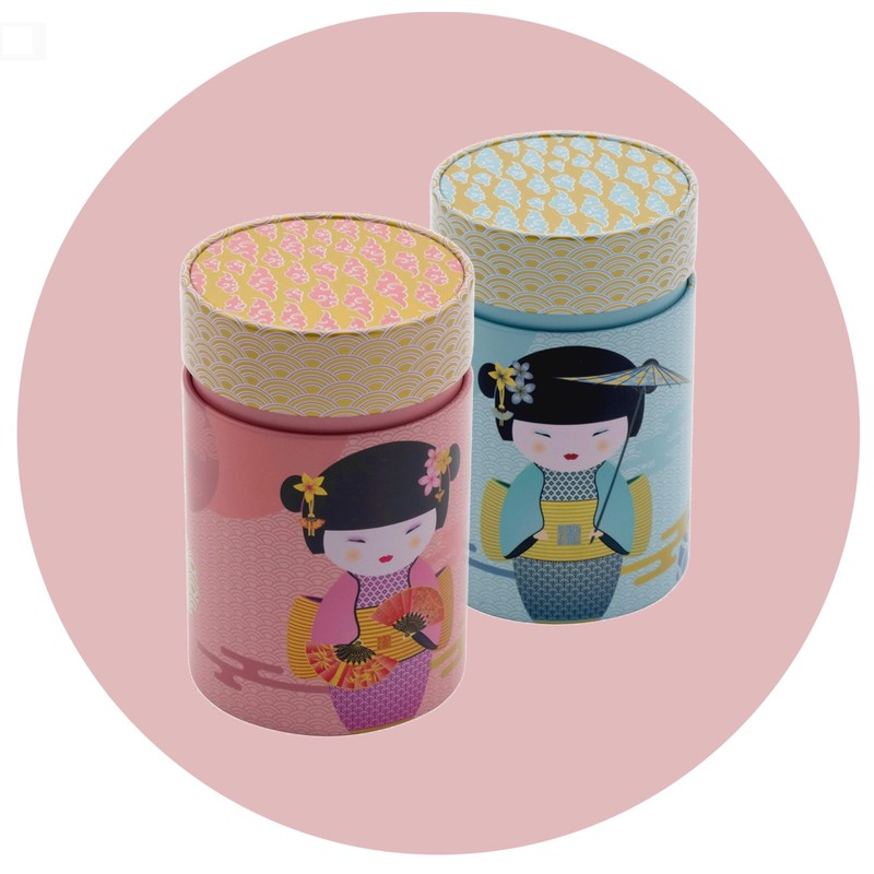 - The Little Geisha tea caddy impresses with two enchanting Japanese women and a matte soft feel at first sight