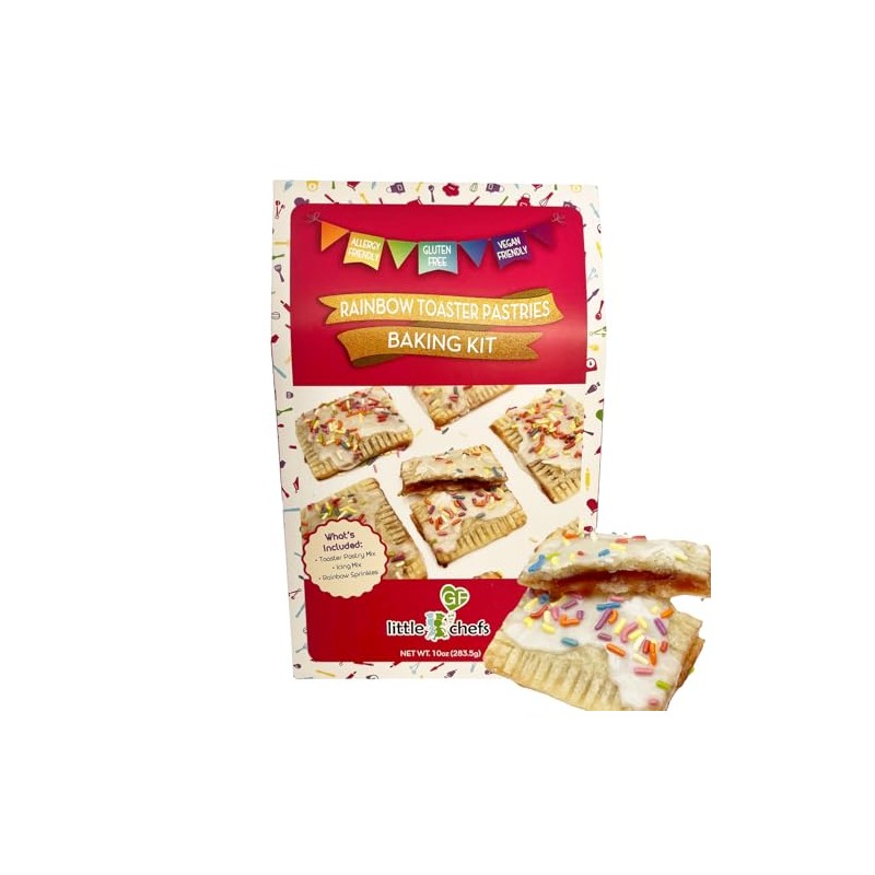 - Elevate your baking with the Little GF Chefs Rainbow Toaster Pastries Mini Baking Kit. This kit includes gluten-free and vegan toaster pastry mix, icing mix, and rainbow sprinkles to decorate your pastries in a fun and festive way. Whether for a holiday gathering or a simple baking project, this kit brings creativity and flavor to your kitchen, allowing you to make vibrant and delicious toaster pastries from scratch.