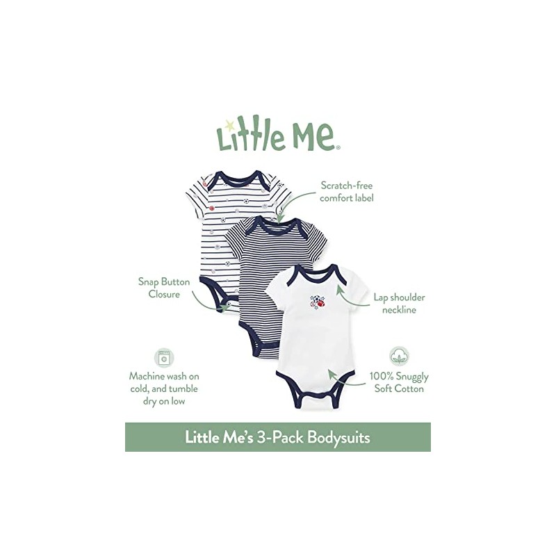 Little Me Baby-Boys Newborn Cute Bear 3 Pack Bodysuit, Blue/Multi, 3 Months