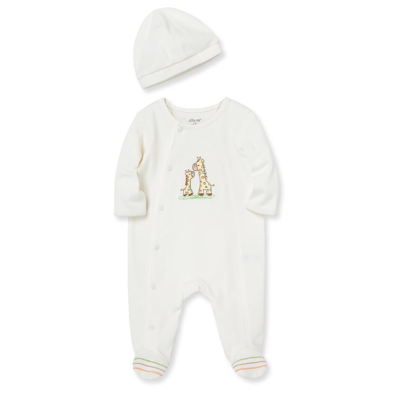 Little Me Unisex Baby 100% Cotton Scratch Free Tag 2-Piece Sleeper, Giraffe, 6 Months