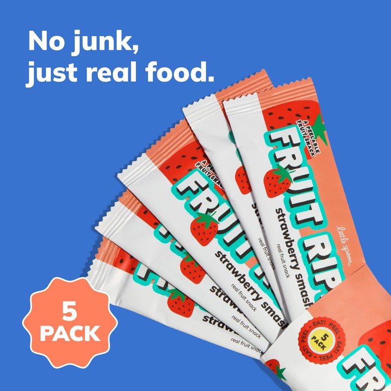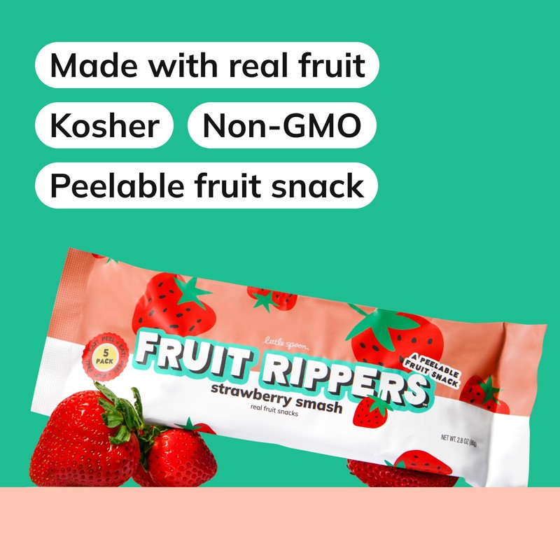 Little Spoon Strawberry Smash Fruit Ripper, With Strawberry + Apple, Real Fruit Snack for Kids, No Artificial Flavors or Dyes, Less Added Sugar, Non-GMO, 5 Packs per Pouch, Sold as 4 Pouches