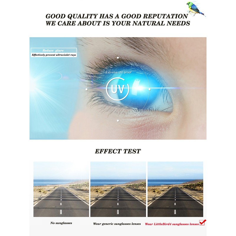 2. Polarizado, ofrece 100% protección UV, bloqueando el 100% de todas las ondas de luz dañinas UVA, UVB, UVC (hasta 400 nm);