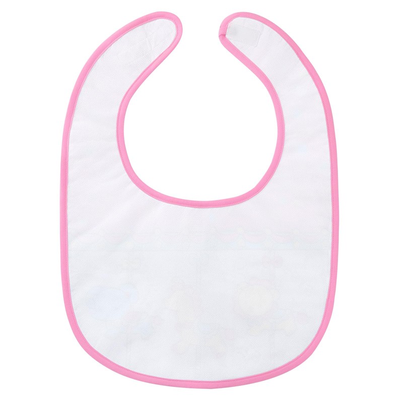 • "Dimensions" - The bib measures 13.4 inches in width, 18 inches in height and has a height up to the neckline of 9 inches. The adjustable hook-and-loop fastener closure fits neck diameter up to 21 inches.