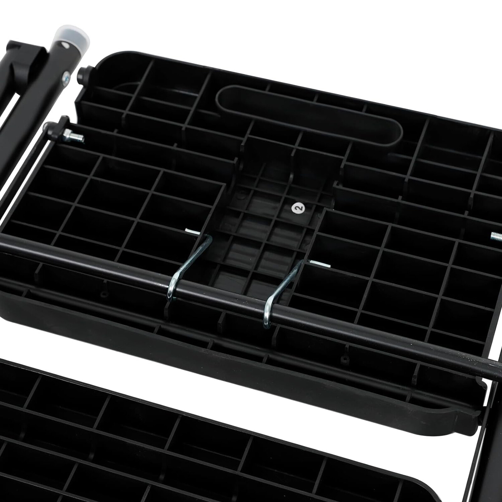 - The thickened steel frame construction and the design of cross structure at the back ensures reliable strength and support. Metal safety buckle locks automatically, strengthening the stability and making you safer while climbing the ladder.
