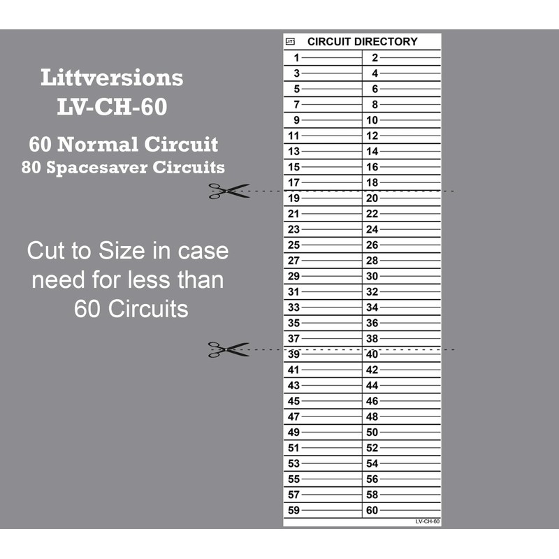 Littversions 60/120 Circuits -1Pcs Replacement for Cutler Hammer Eaton Electrical Circuit Breaker Fuse Panel Directory Labels Stickers Decals CKTDIR