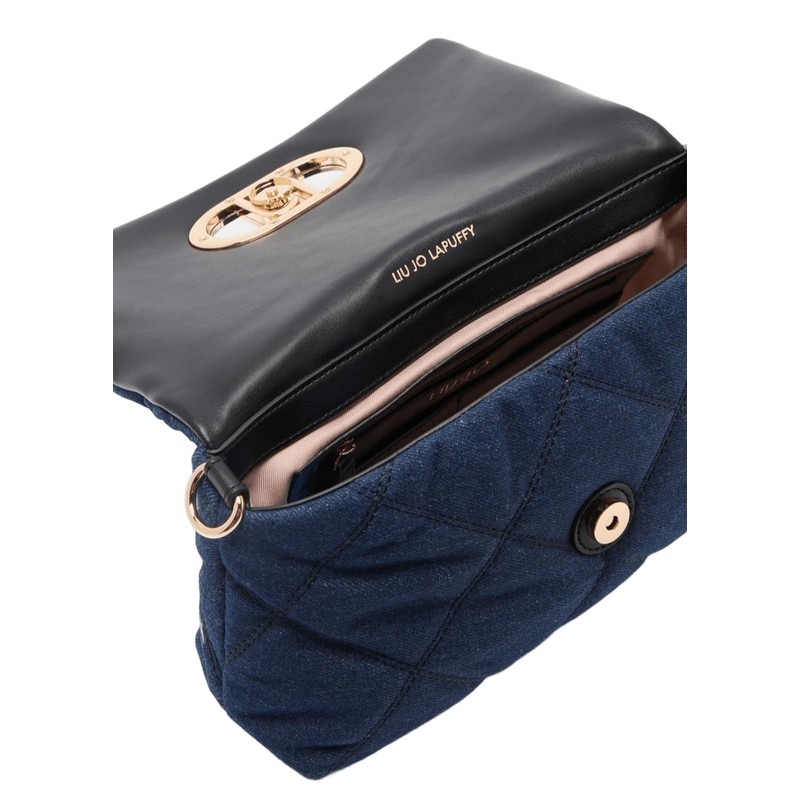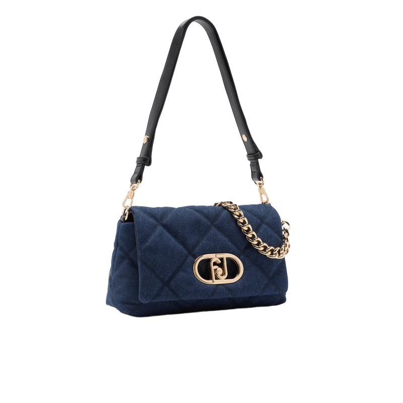 LIU.JO Umhängetasche aus gepolstertem Denim, Marineblau, goldene Kette, dekorativer Verschluss