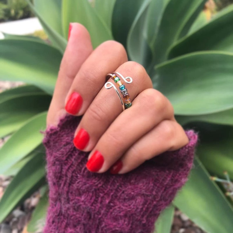 - 【Anxiety Relief Ring】The fidget ring is rotatable, spin easily and no noise. Spinner ring can help relief anxiety by rotating the beads, reduce stress and improve mood. Put on these irritable rings and you will find inner peace.