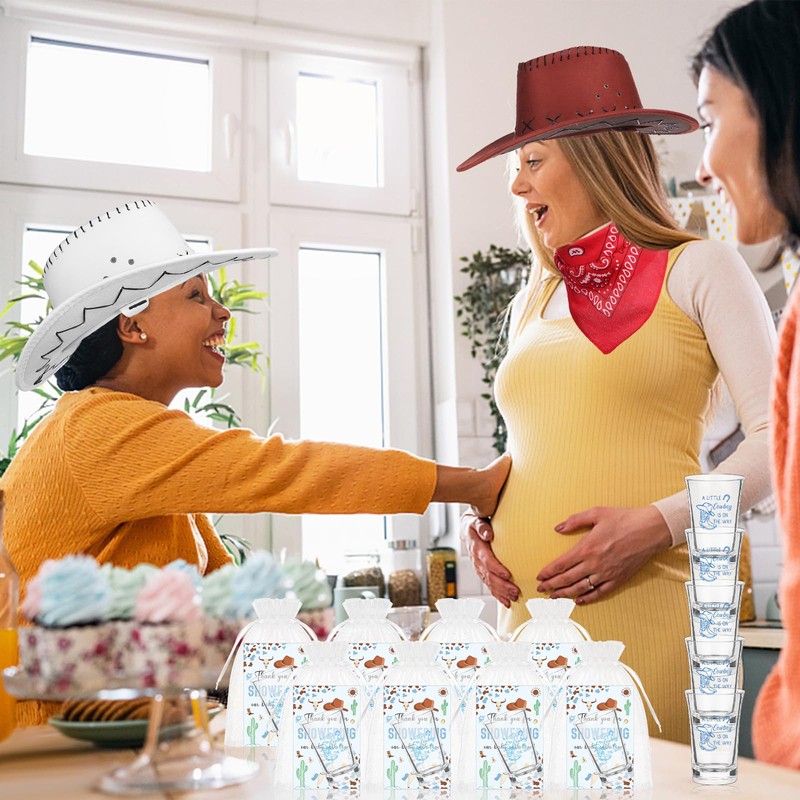 - 【Western Cowboy Thank You Gift for Guests】You will receive a whole set of beautiful bulk baby shower gift set, including 60 Cowboy themed acrylic clear wine glasses, 60 thank you cards, 60 clear drawstring gift bags, sufficient quantity and beautiful combination for your daily use and replacement needs.Perfect for creating a charming Western vibe at baby showers, gender reveals, or cowboy-themed birthday parties.