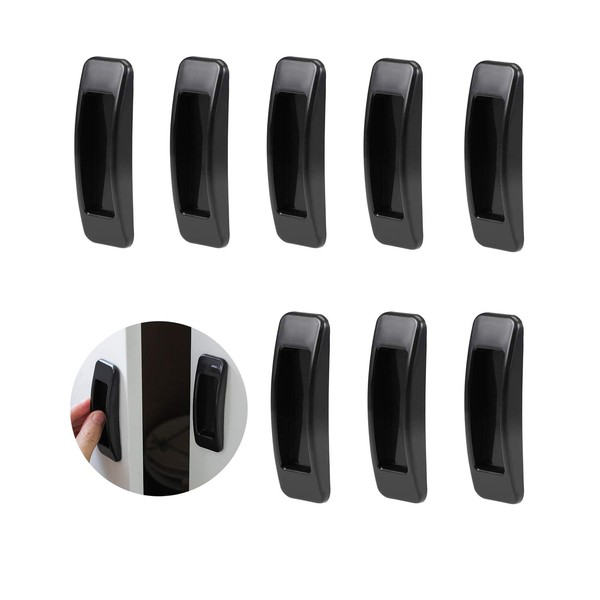 LIUHE 8 Pack Self-Stick Push Pull Helper Black ABS Plastic Door Window Wardrobe Handle Instant Cabinet Drawer Handles