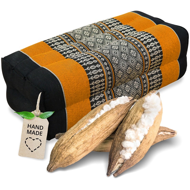 - Practical and versatile: the firm and sturdy cushion provides a reliable, durable and robust seat. Combined with a Thai mat or a folding mattress made of kapok, the plant down, you bring Thai cosiness into your life. Yoga Pillow Size: 17cm (L) x 34cm (W) x 12cm (H) Weight: 1kg As each piece is handmade, measurements may vary slightly.