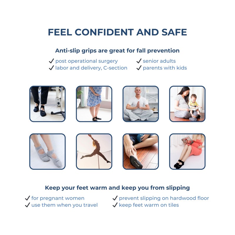 - STURDY - Elastic arch ensures socks stay stable on your feet without shifting around. The socks are widely used for fall prevention by pregnant women, moms with young kids, aging elderly seniors. Pack them for hospital after labor & delivery, c-section or knee surgery or post operation recovery