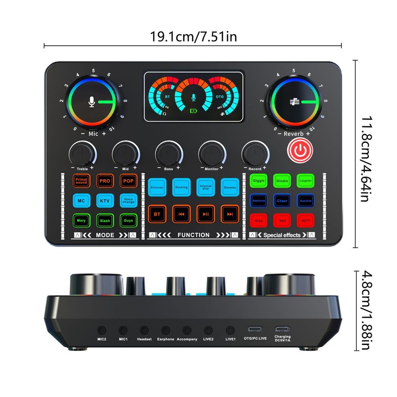 Live Sound Card Bluetooth 5.0 Noise Reduction Voice Change for Karaoke Live Streaming Recording Gaming