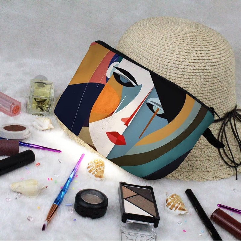 - 2.Fashion Design: The Abstract Face cosmetic bag has a clear and vibrant design, double-sided printing. There are different kinds of cute, lovely, funny and beautiful patterns to choose. The makeup bag fits both the popular aesthetic and unique personalities