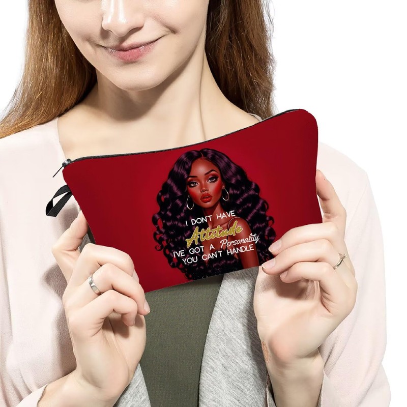 Livel lhood African American Makeup Bag Cute Small Organizer Zipper Pouch I've Got A Personality Cosmetic Bag Inspiring Birthday Present for Black Women Friends, hzt0755, Small