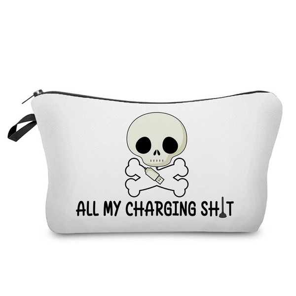 Livel lhood All My Charging Makeup Bag Cute Small Organizer Zipper Pouch Skull Cosmetic Bag Birthday Present for Women Friends, hzj0613, Small