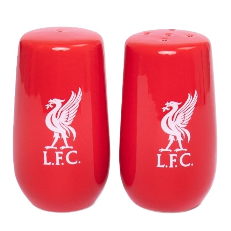 - DESIGN: Stoneware salt and pepper shaker set featuring Liverpool FC branding in bright red colour, perfect for dining tables and breakfast bars