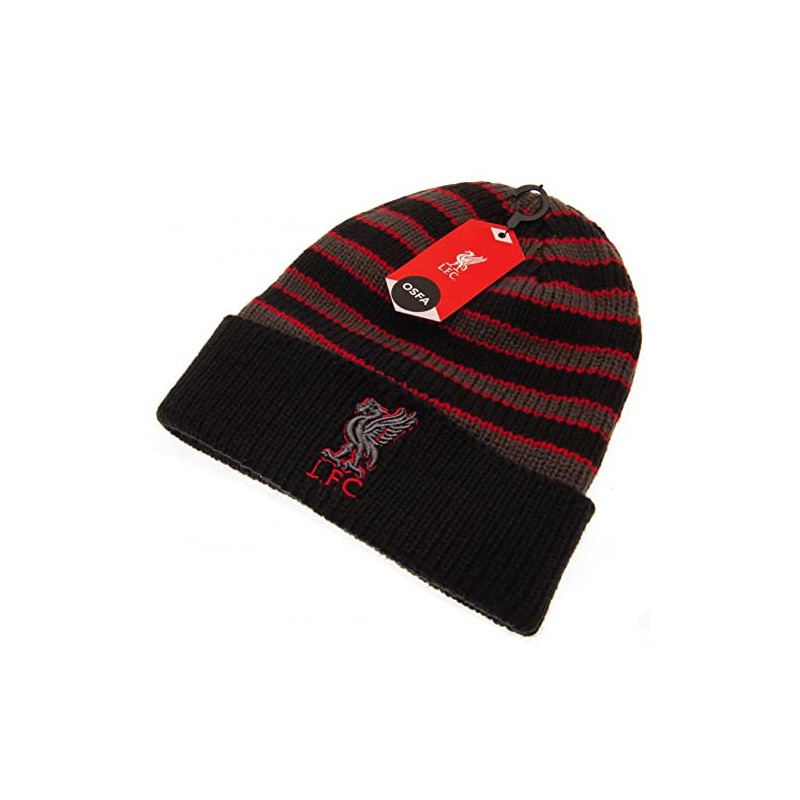 Liverpool Fc Winter Knitted Bobble Hat Beanie Grey Black Red Adult One Size