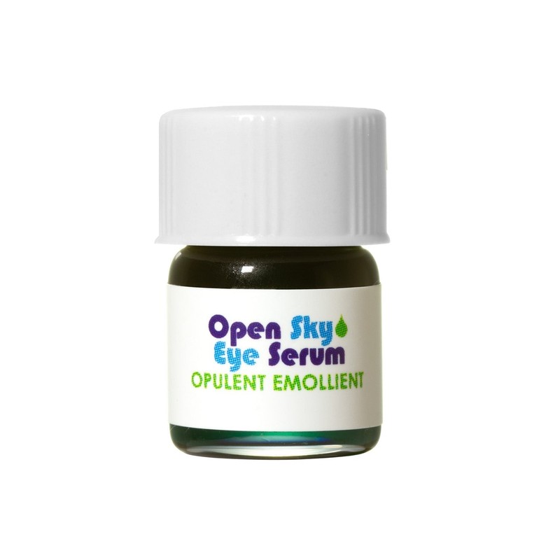 Open Sky Eye Serum is a rejuvenating serum for tired eyes, puffy skin, dark circles, and fine lines. This faithful friend fortifies, freshens, and tones delicate under-eye skin with the cool, blue firming fluid of pure plant botanicals, creating a super saturation of organic hydration.