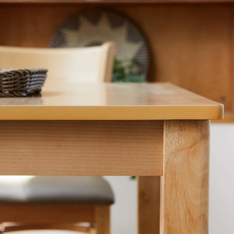 - Livinia Cabin 45.3" Dining Table is a versatile modern farmhouse style rectangular wooden kitchen table. This table features thick legs and sturdy frame that are constructed of Malaysian Oak, with mdf veneer top. The table edges and legs are roundedoff for safety, and the smooth surface top makes this table suitable not only as a dining table but also as a desk
