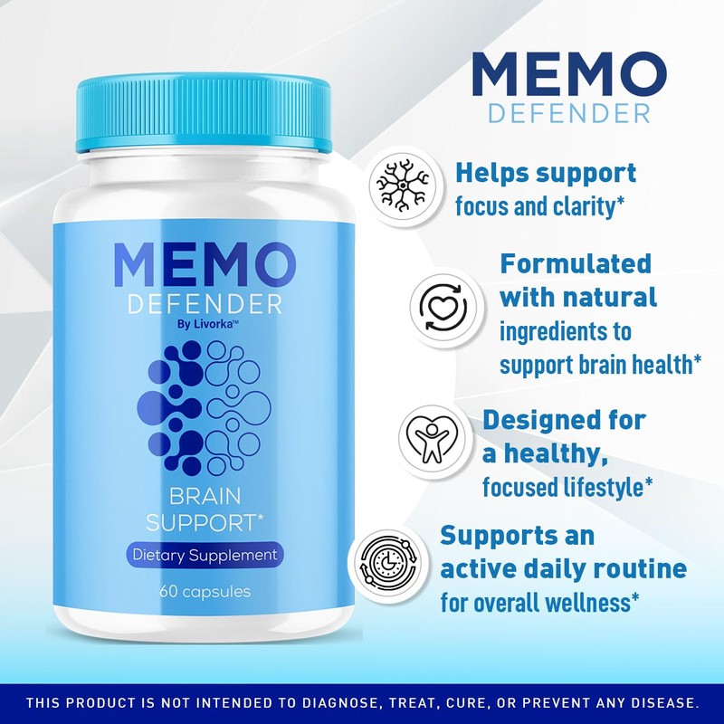 LIVORKA Memo Defender Capsules - Official Memo Defender Advanced Supplement Pills, All Natural Vitamins Premium Formula MemoDefender Wellness & Health Support, 60 Capsules for 1 Month