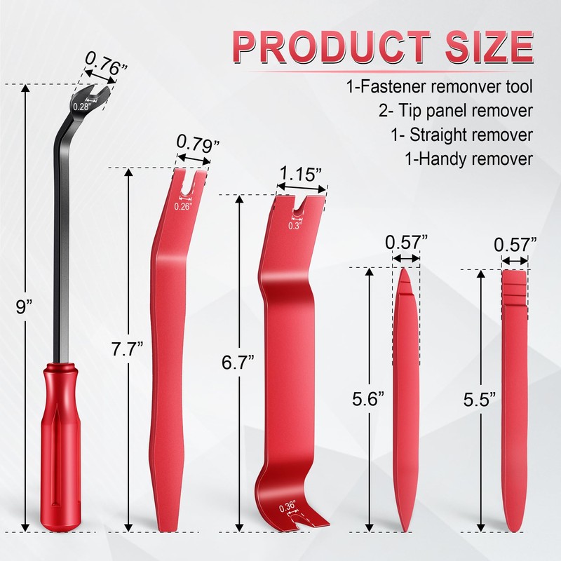- Package includes 4 plastic panel removal tool + 1 fastener remover to facilitate your needs when repairing. A professional tool kit that is sturdy and easy to use.
