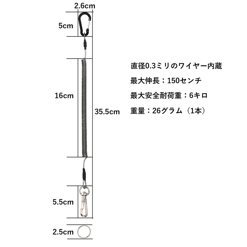 - Cord Length: 13.8 inches (35 cm); Curly Cord Length: 6.3 inches (16 cm); Maximum Stretch: 59.1 inches (150 cm); Maximum Safe Load Capacity: 13.3 lbs (6 kg); Set of 3
