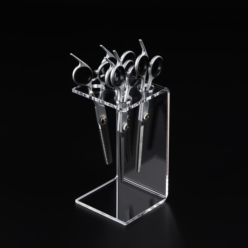 LIXIMMAZN 5 Holes Acrylic Scissors Organizer, Clear Acrylic Scissors Rack Stand Hairdresser Combs Clips Desktop Holder Salon (2 Pieces)