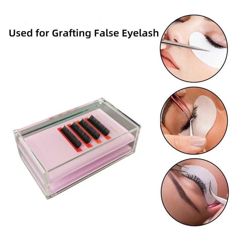 LIXIMMAZN Caja organizadora de pestañas de acrílico de 2 capas, contenedor de maquillaje transparente para pestañas postizas, estuche de almacenamiento transparente (rosa)