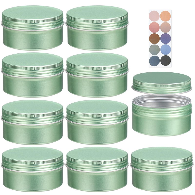 LIYAR 3 oz Tins for Salves, 10 Pack Aluminum Metal Tin with Lids, Round Salve Tins 3oz Tin with Lids and Labels, Homemade Jars for for Salve, Blam, Spices, Butter Balm or Candles(Pale Green)