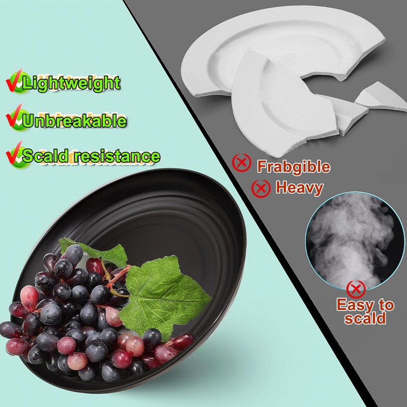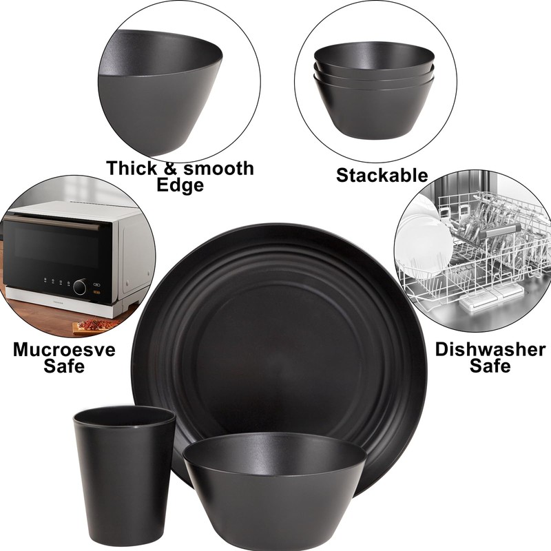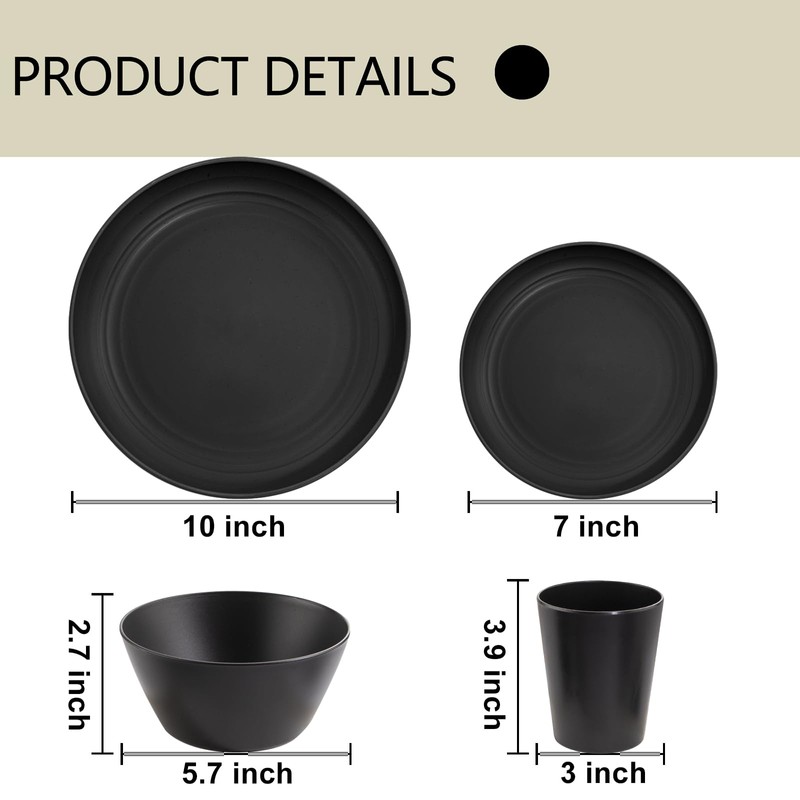 • Value Pack:Our black wheat straw dinnerware sets include 12pcs dinner plates, 12pcs salas plates, 12pcs wheat straw bowsl,12pcs cups, the total is 48 pieces.