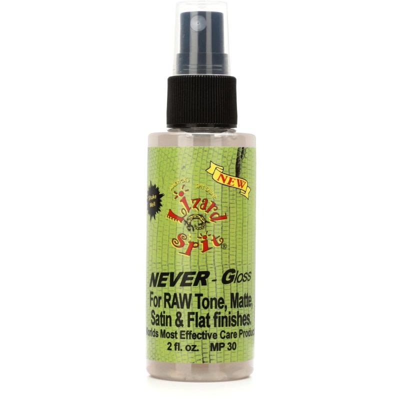 Standard instrument cleaners with potent formulas can spell doom for your beloved flat-finished instruments. With Lizard Spit MP 30 NEVER-Gloss Cleaner, you can safely give your guitars and basses the TLC they deserve without the worry of undesirable effects. Just apply the cleaner to a polishing cloth, start wiping your instrument, and watch as fingerprints, dirt, oil, and other residues disappear, leaving a good-as-new look. Sweetwater technicians always have Lizard Spit MP 30 NEVER-Gloss Cleaner on hand for quick and easy non-gloss finish cleaning jobs — add a bottle or two to your arsenal and keep your instruments in tip-top shape!