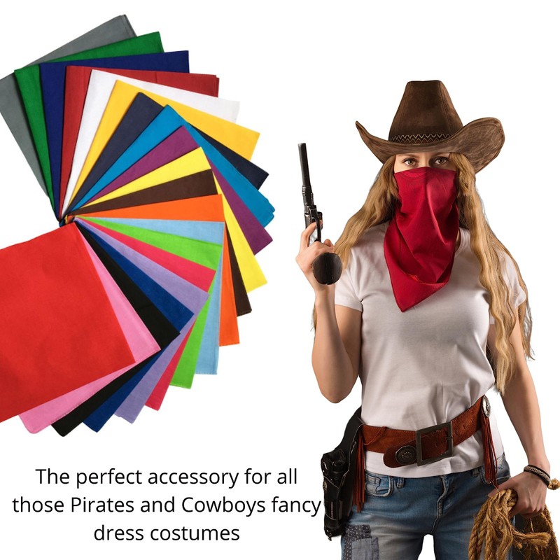 - ➽ Cowboy bandanas for men or a headscarf woman can wear or if it's an accessory for the kids cowboy hat this bandanas with traditional bandana Plain print can be used pretty much anywhere