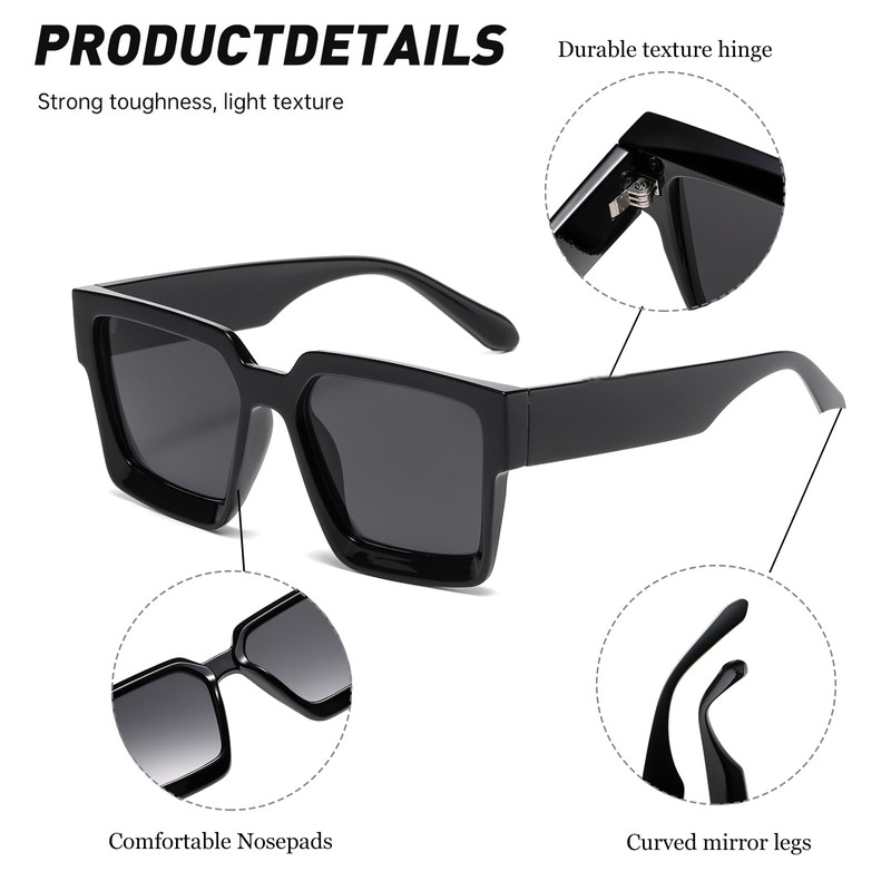 - 【Retro Design】This retro square sunglasses is a must-have for fashionista,the simple oversized frame design makes the thick frame very delicate,these designs are unique and fashionable, suitable for a variety of face shapes to wear, plus mirrored legs ornament.This 90s fashion sunglasses suitable for high-end fashion accessories and daily wear throughout the year,highlight your charm and trendy in the crowe.
