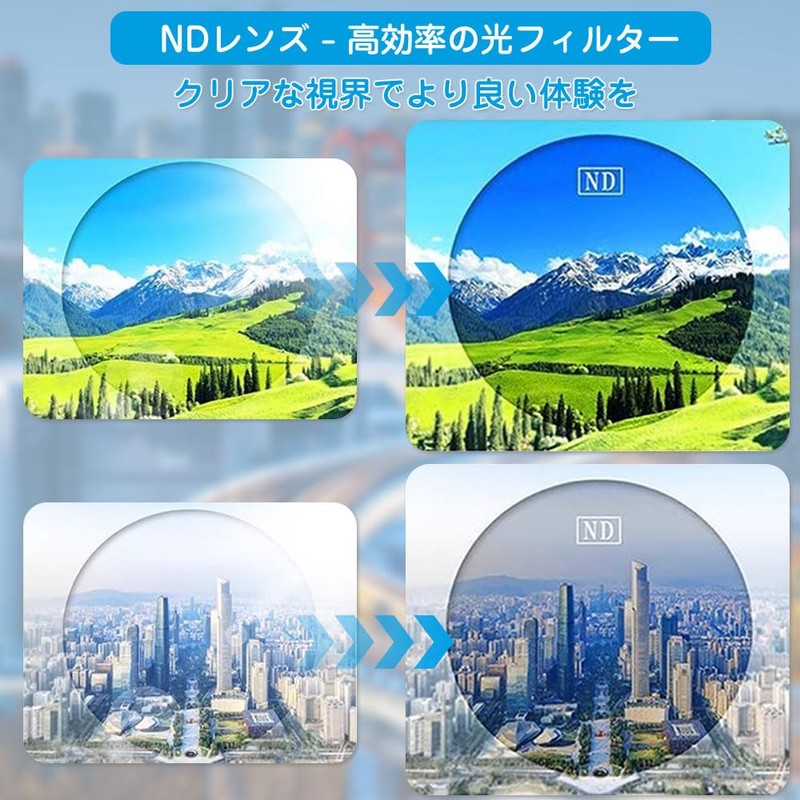 - 【太陽光を遮断】NDフィルター技術で目を保護し、クリアな視界を確保し、目の疲れを軽減し、快適性と視力を向上させます。