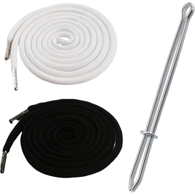 Ljxyloog 2Pcs 51 Inch Long Universal Drawstring Cords Replacement with 1PC Easy Threaders, Suitable for Sweatpants,Shorts,Hoodie String, Simple and Durable(Black + White Cord, Round Metal Head)