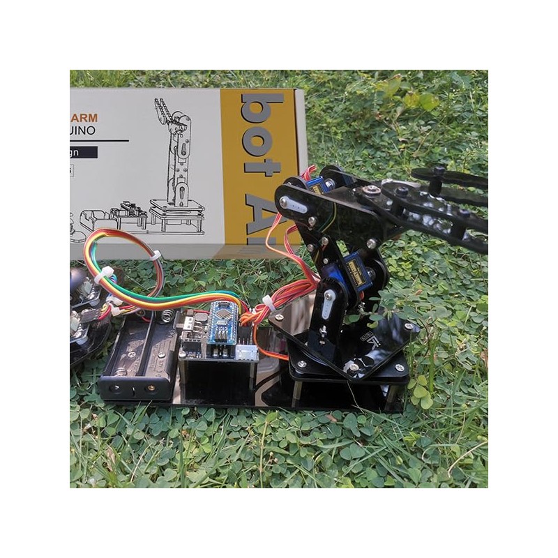 - ♥Flexible 4DF Arm Robot: The 4-axis design robotic arm is flexible and can grab objects in any direction. The clip can be opened 260°, the wrist can be rotated 180°, the elbow can be rotated 180°, and the base can be rotated 180°.