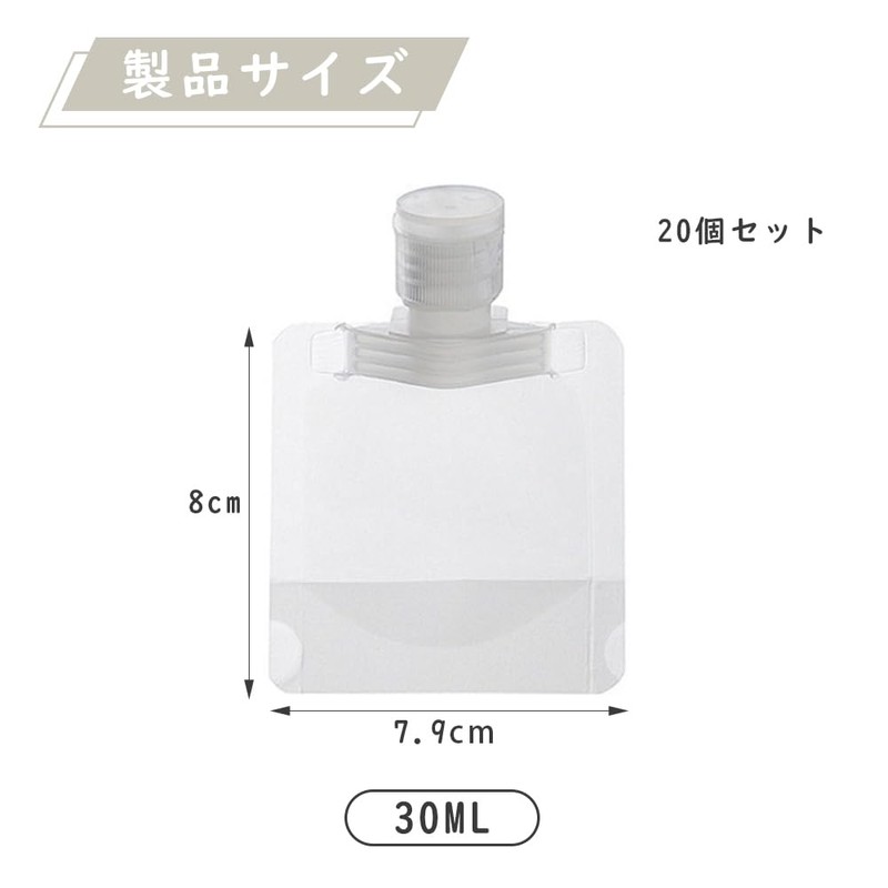 LKCCTK Travel Bottle, 1.0 fl oz (30 ml), 20 Pack Transparent Pouches, Divided Containers, For Travel, Shampoo, Bath Dew, Facial Cleanser, Lightweight, Compact, Portable, Leak Proof, Refill Bottles