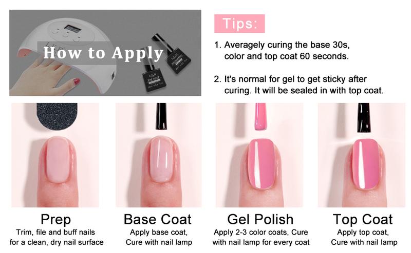 - ️Easy Application Gel Nail Polish: LKE gel nail polish with good tenacity and highly pigmented, our premium gel material brings a long-lasting and brilliant shine. The gel nail polish set is lasting with perfect shine under a proper application. Trendiest color gel polish coat to create different styles with glossy or matte top coat for all seasons and daily routine life