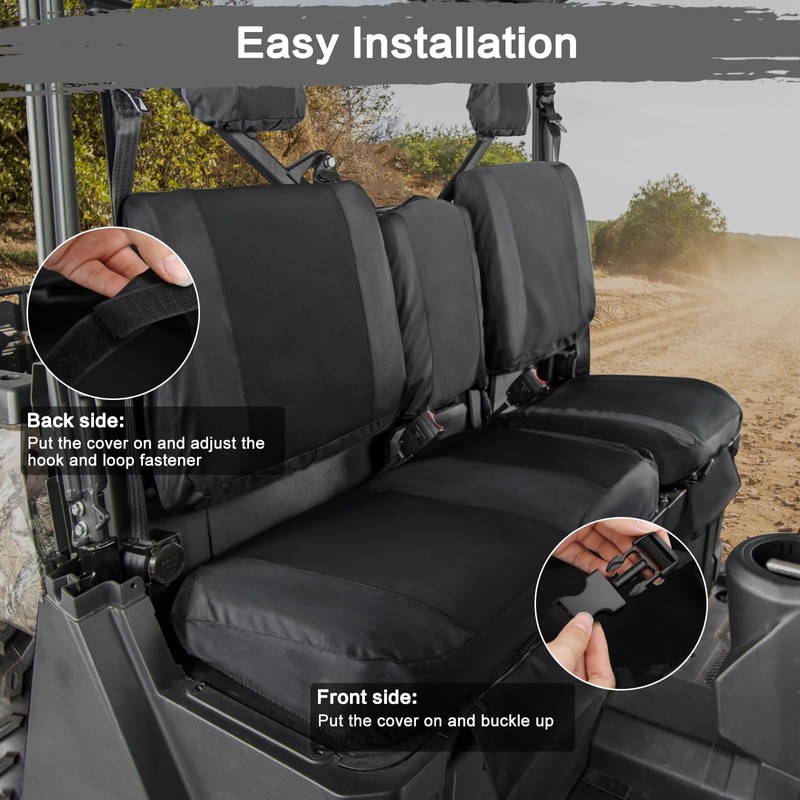 - 【EASY INSTALLATION】You can install the seat covers in a few minutes, just put the covers on the seats and tighten the strips. The seat covers also allow you to take them off easily when you want to clean the covers. Save time and effort while ensuring your seats stay protected.