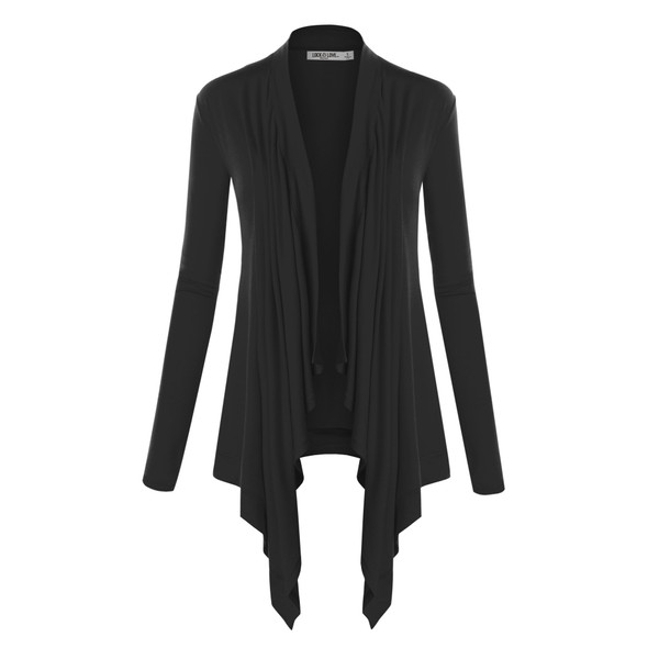LL WSK849 Women's Long Sleeve Lightweight Draped Front Open Asymmetrical Cardigan XXXL Black