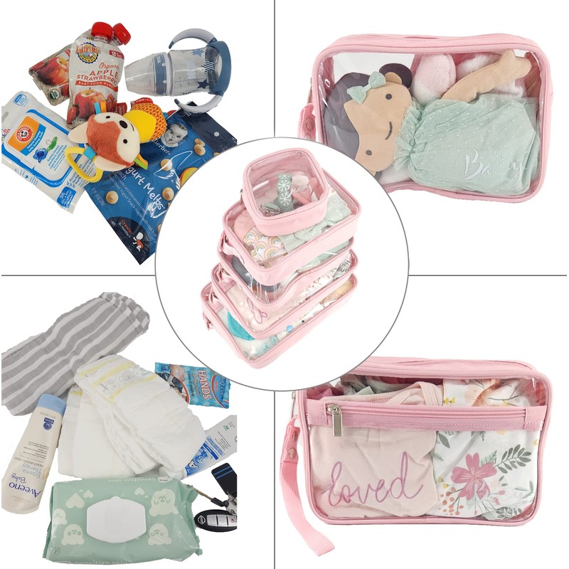 Llama Bella 5 Piece Diaper Bag Organizer Pouch Set, Clear with Straps and Pacifier Case - Pink