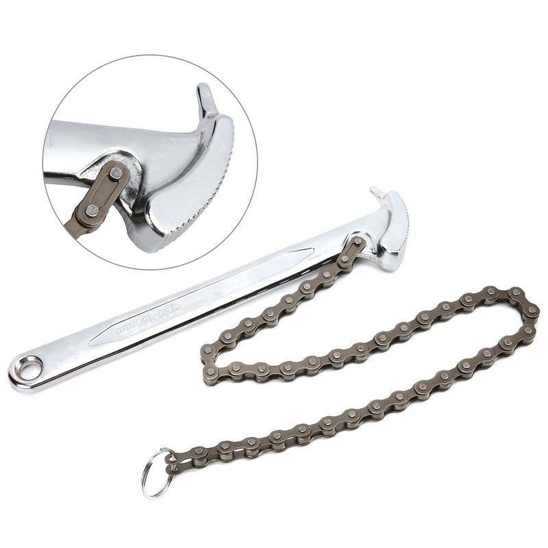 • Esta llave de cadena se adapta a un diámetro de hasta 6,1 pulgadas, por lo que funciona perfectamente como herramienta de filtro, herramienta de instalación de tuberías, etc.