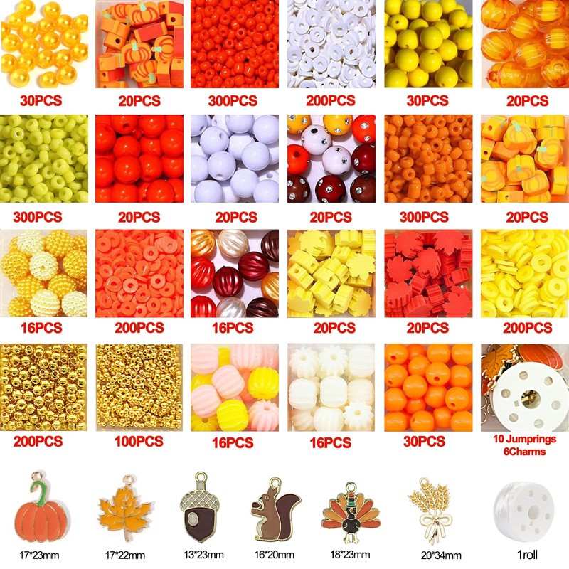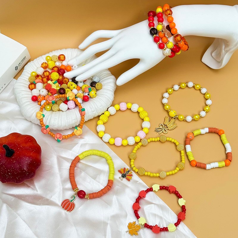 - FALL BRACELET KIT: Our fall bracelet making kit consists of a variety of different styles of beads, including brightly colored caly beads and acrylic beads. Polymerized clay beads with thanksgiving elements such as maple leaf, pumpkins and more are included. Add a different kind of excitement to your thanksgiving party!