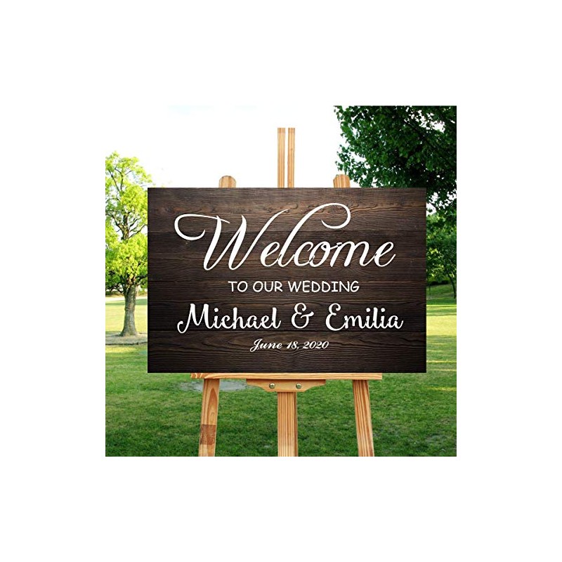 LLIGHT Personalized Welcome to Our Wedding Sign, Rustic Wooden Welcome Sign Customized with Your Names and Dates - 18x24 Inch