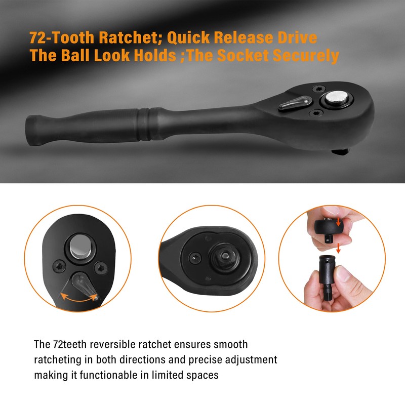 1 x 1/4" 72th-Tooth Ratchet Handle; 1 x Carry Case.