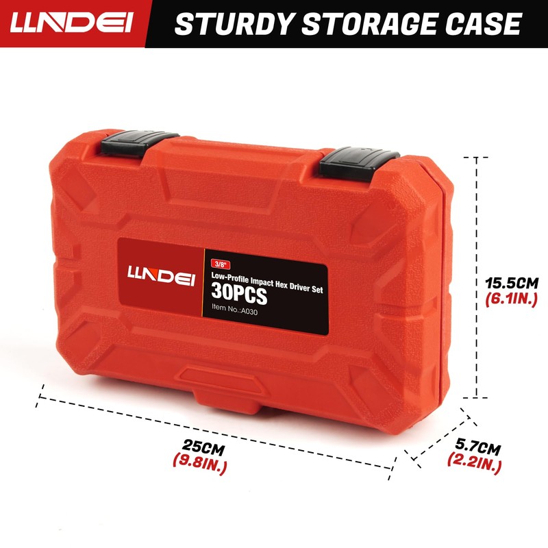LLNDEI 3/8 Inch Drive Low Profile Impact Hex Driver Set, 30-piece SAE/Metric ...