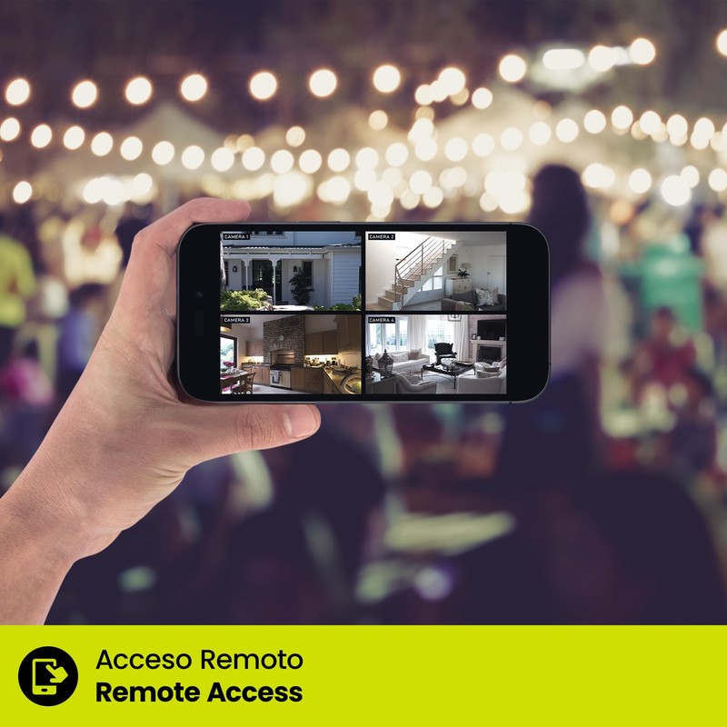 - Graba en la nube y en tarjeta de memoria que puede ser de hasta 128 Gb (Tarjeta no incluida)