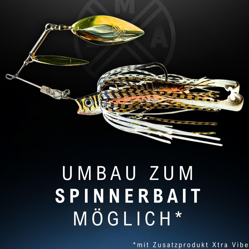 - Conversion to a spinner bait: with the "Xtra Vibe" from LMAB you can turn this artificial bait into a spinner bait in just a few seconds, which gives the bait even more variety