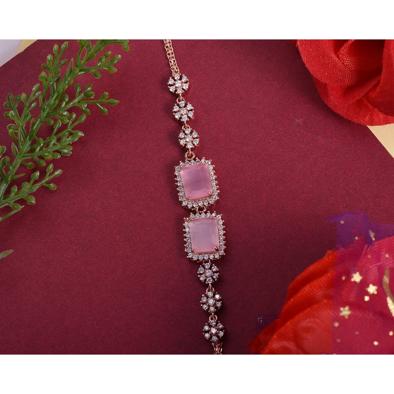 LMDPRAJAPATIS Natural Rose Quartz Stone Rose Gold Bracelet For Boy And Girl, Gemstone, Quartz