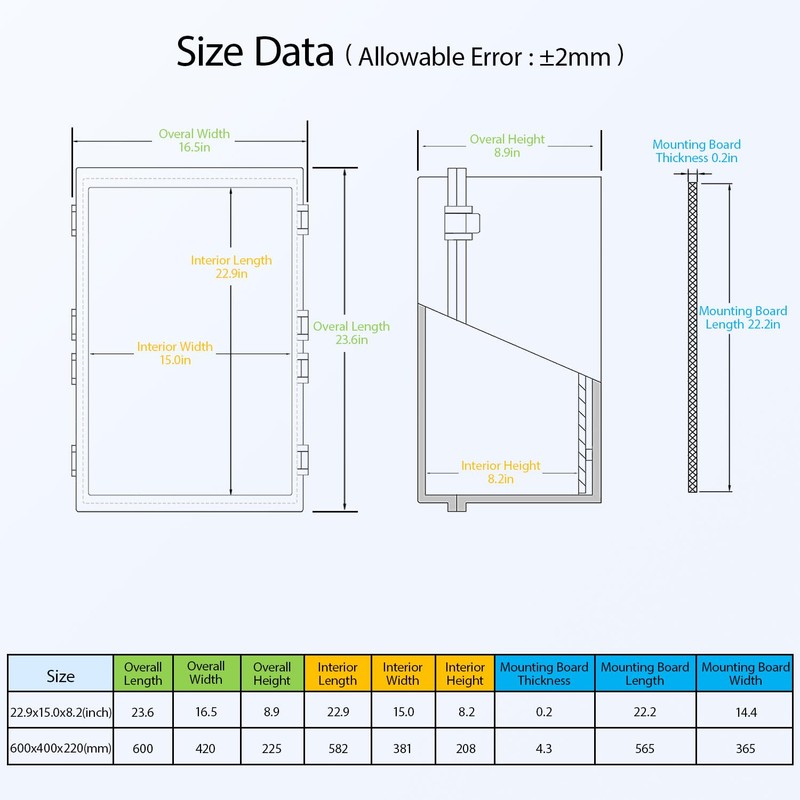 - [ Size Info ] Overall outer dimension: 23.6" x 16.5" x 8.9"; Inner dimension: 22.9" x 15.0" x 8.2" (with a usable interior space that is unobstructed by any internal components such as screw studs or dividers). Please refer to picture for specific data.